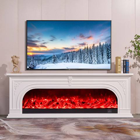 유럽-미국 2m TV 캐비닛 현대 캐주얼 단단한 소나무 나무 실제 화재 벽난로 배경 가정 난방 거실 장식